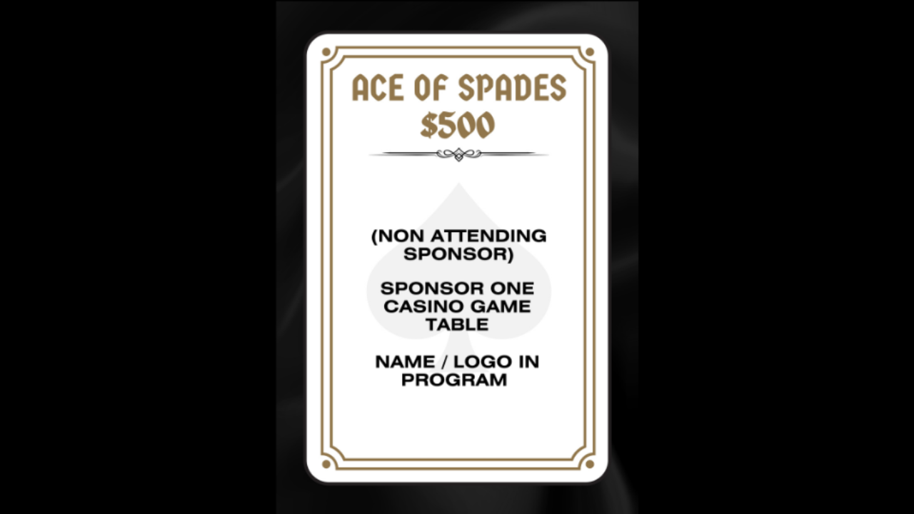 The Ace of Spades sponsorship package includes the sponsorship of one casino game and your (company's) name and logo in the program.